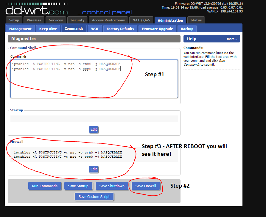 1) Login to your Router via its IP Address. Usually DDWRT is http://192.168.1.1/ but yours may be different.