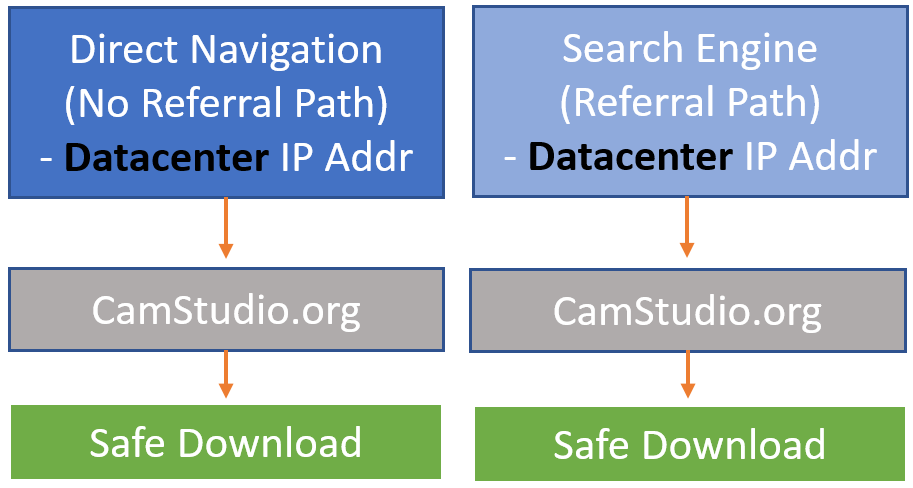 This is when it starts to get interesting, depending on how the scanning occurs (order of the steps). Or if a manual search visit is performed AND the browser is similar to the initial visitor’s browser who went directly they would still get the Safe download instead of Adware.